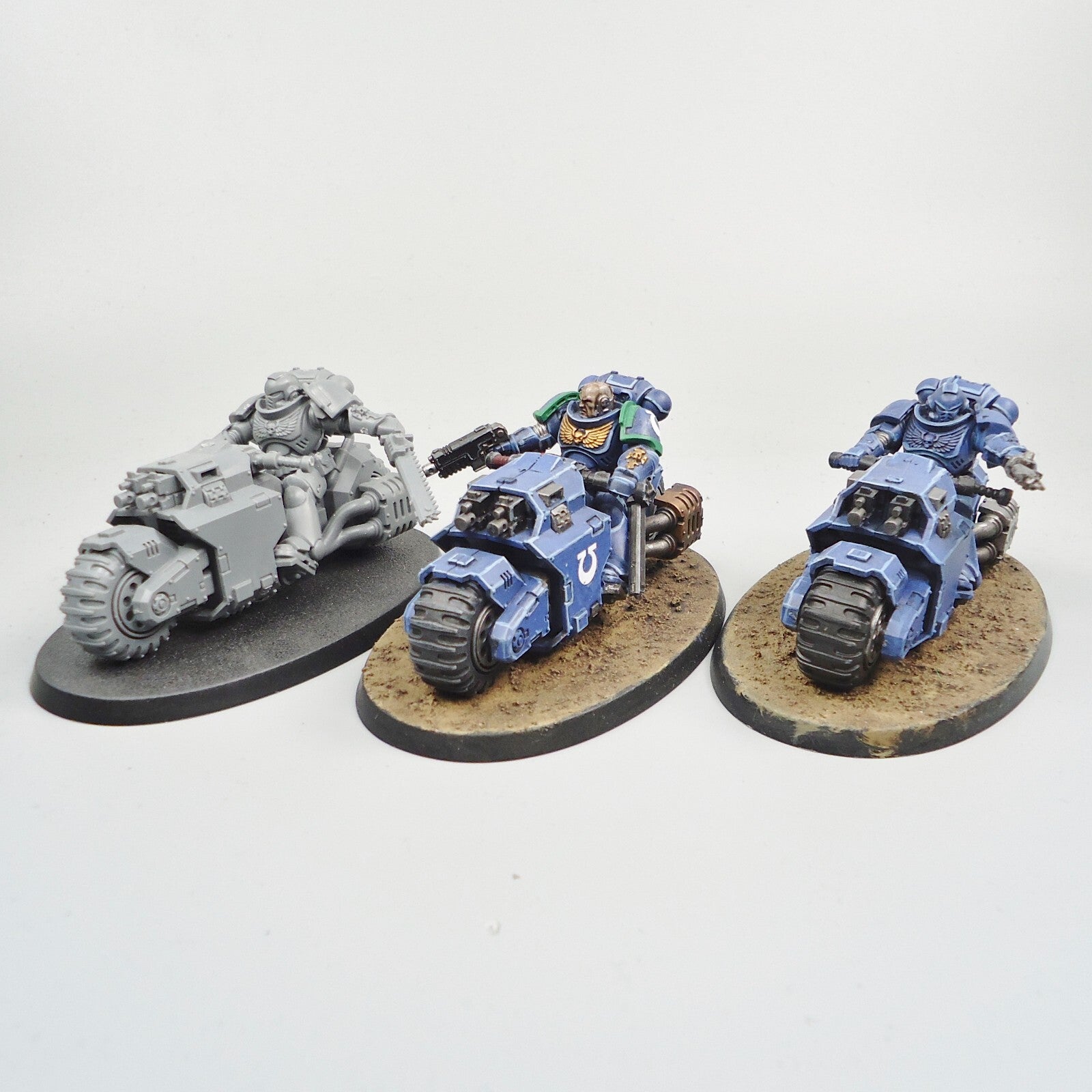 Space Marines Ultramarines Outriders x3 Partly Painted - Warhammer 40k