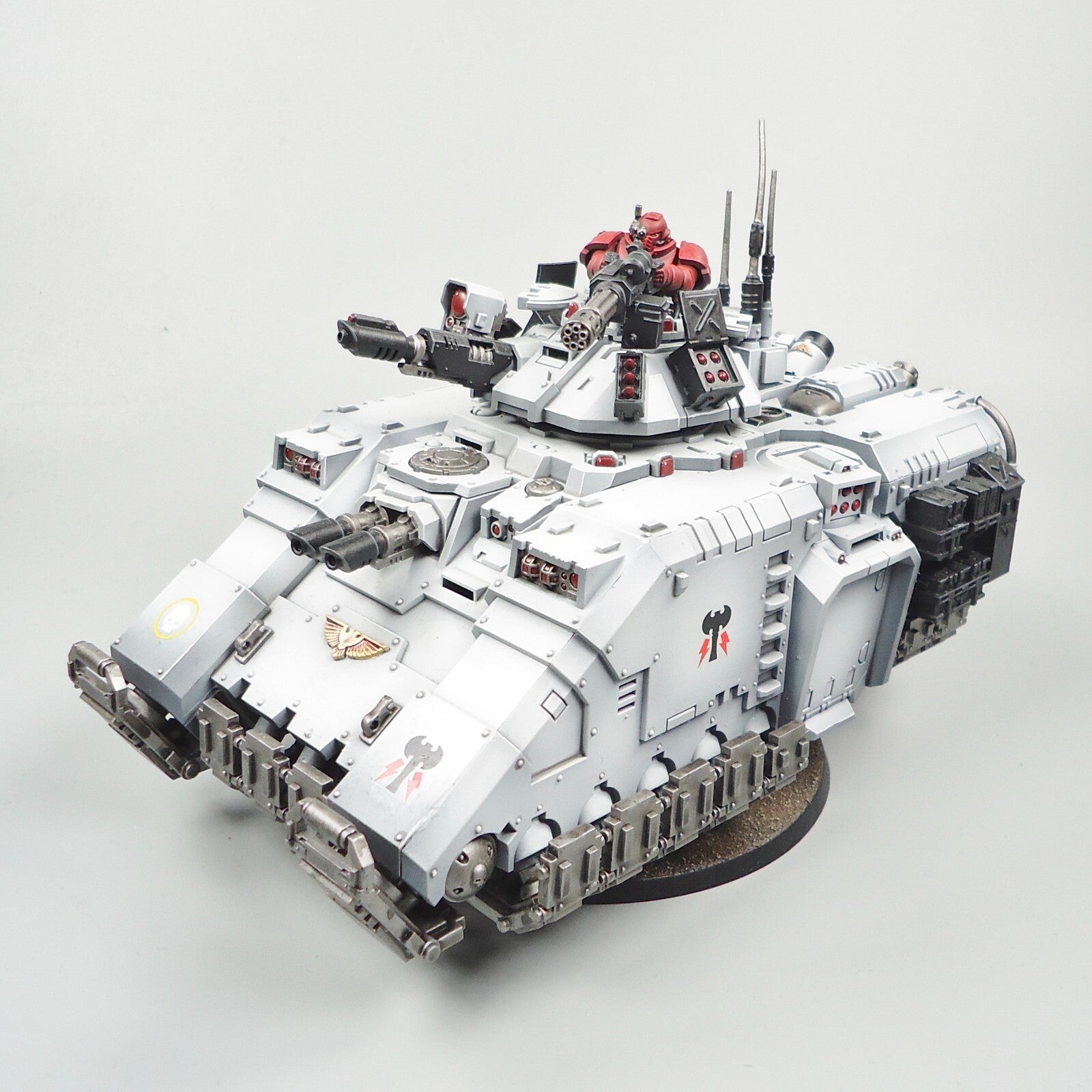 You are looking at a warhammer 40k army space marines Primaris Storm Reapers Repulsor painted (as seen in photos)